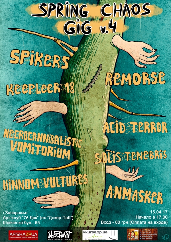 Лучи мартовского солнца растапливают снег и лёд, которые, тая, обнажают чёрный асфальт и всё несовершенство этого грязного мира. Чтобы правильно встретить весну, советуем дичайше угореть на мощнейшем весеннем гиге "spring chaos gig vol. 4" в Запорожье 15 апреля.